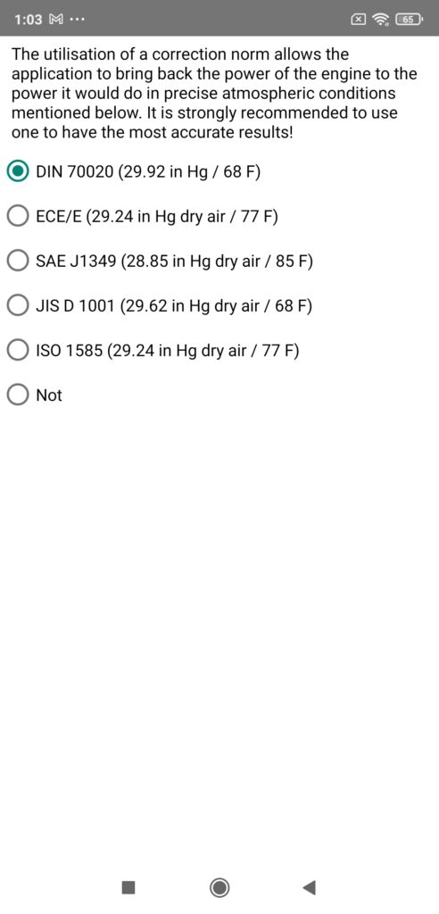 - “Bring back” the power and torque results measured for a given engine to those that this engine would deliver in this reference weather standard using a correction formula