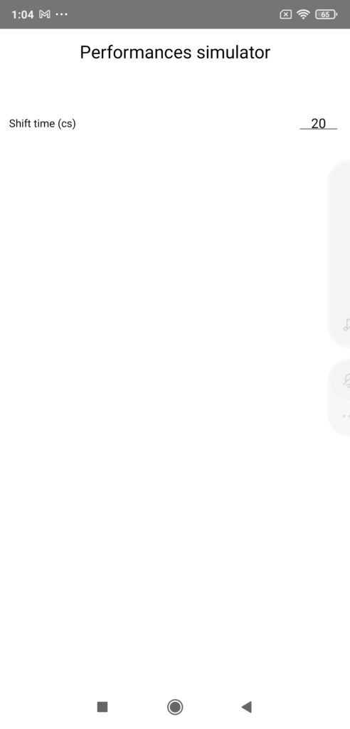 Press Performance simulator, then choose the shift time that you consider to be the most realistic when driving your car. Once this time has been chosen, return to the Setup screen by pressing the BACK button.