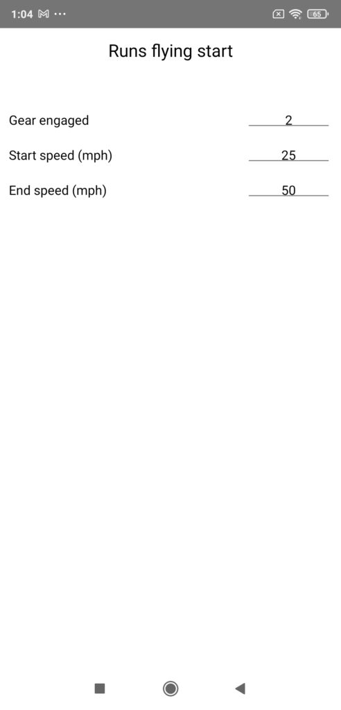 Note 1: It is of course the gear engaged at the start of the run which must be selected. For example, if you want to do a 40-100 mph in 2/3/4, you must enter the gear 2.
