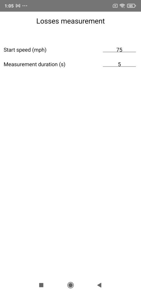 - The choice of losses measurement parameters (start speed, measurement duration)