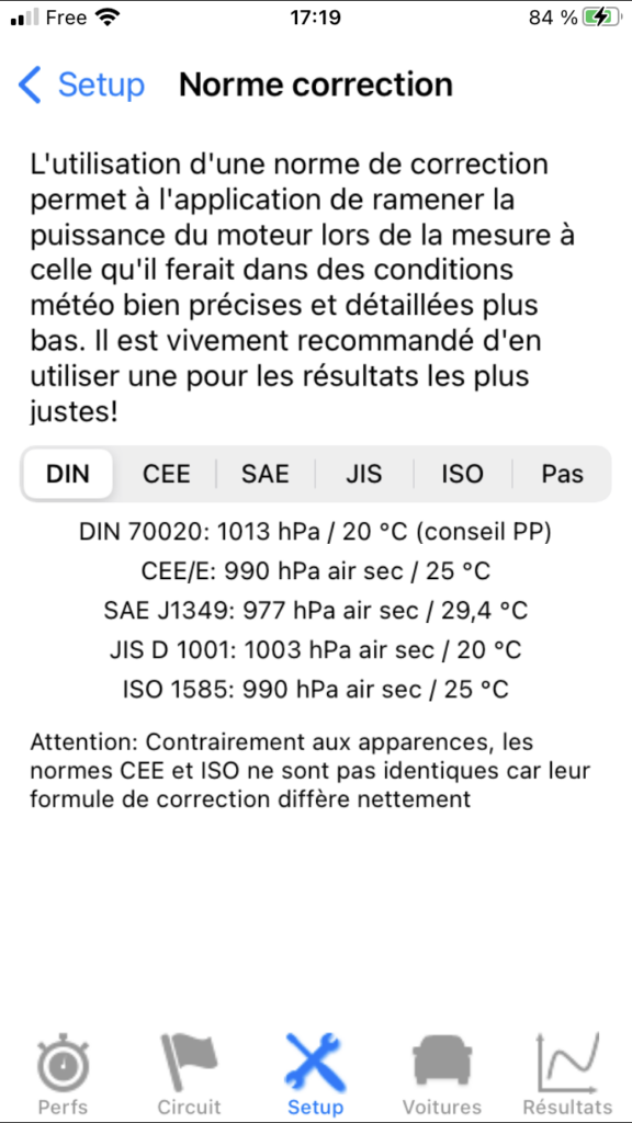 - “Ramener” les résultats de puissance et de couple mesurés pour un moteur donné à ceux que ce moteur délivrerait dans ce standard météo de référence grâce à une formule de correction