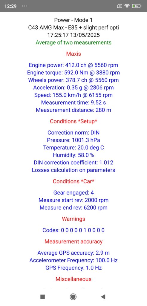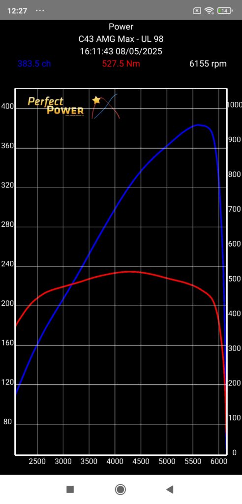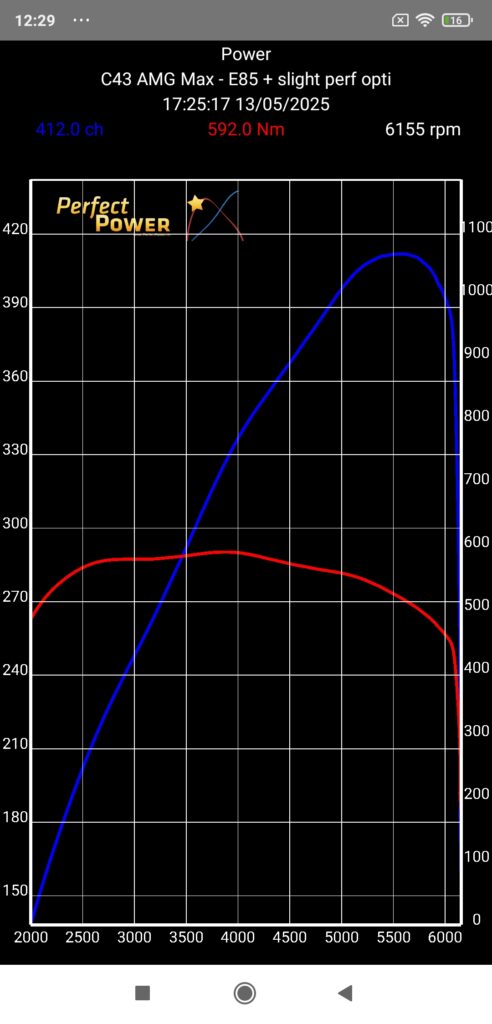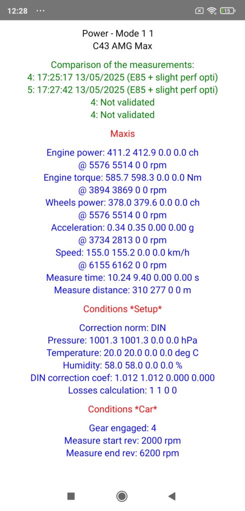 And to further illustrate the performance achieved with this C43 AMG converted to ethanol with just a slight performance optimization (and once again without touching the supercharging), know that we are almost at the level of the engine results of a Stage 1 with Unleaded 98 announced by all the remapping websites (which probably all share the same file…) at 420 ch / hp and 600 Nm: that says it all about the extraordinary performance of ethanol, doesn’t it?